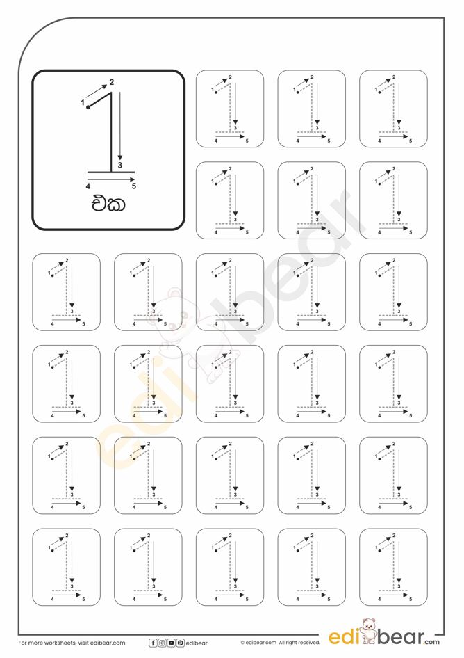 Number 1 Tracing Worksheets