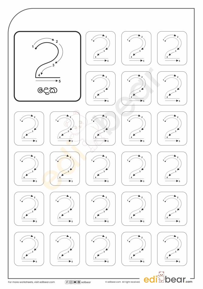 Number 2 Tracing Worksheets