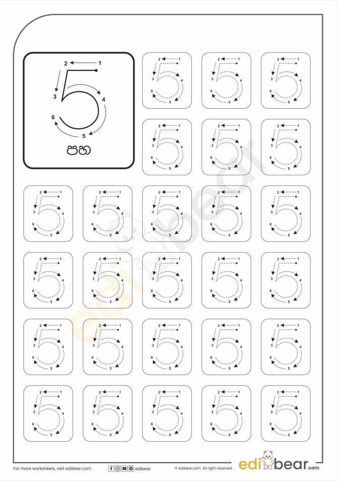 Number 5 Tracing Worksheets